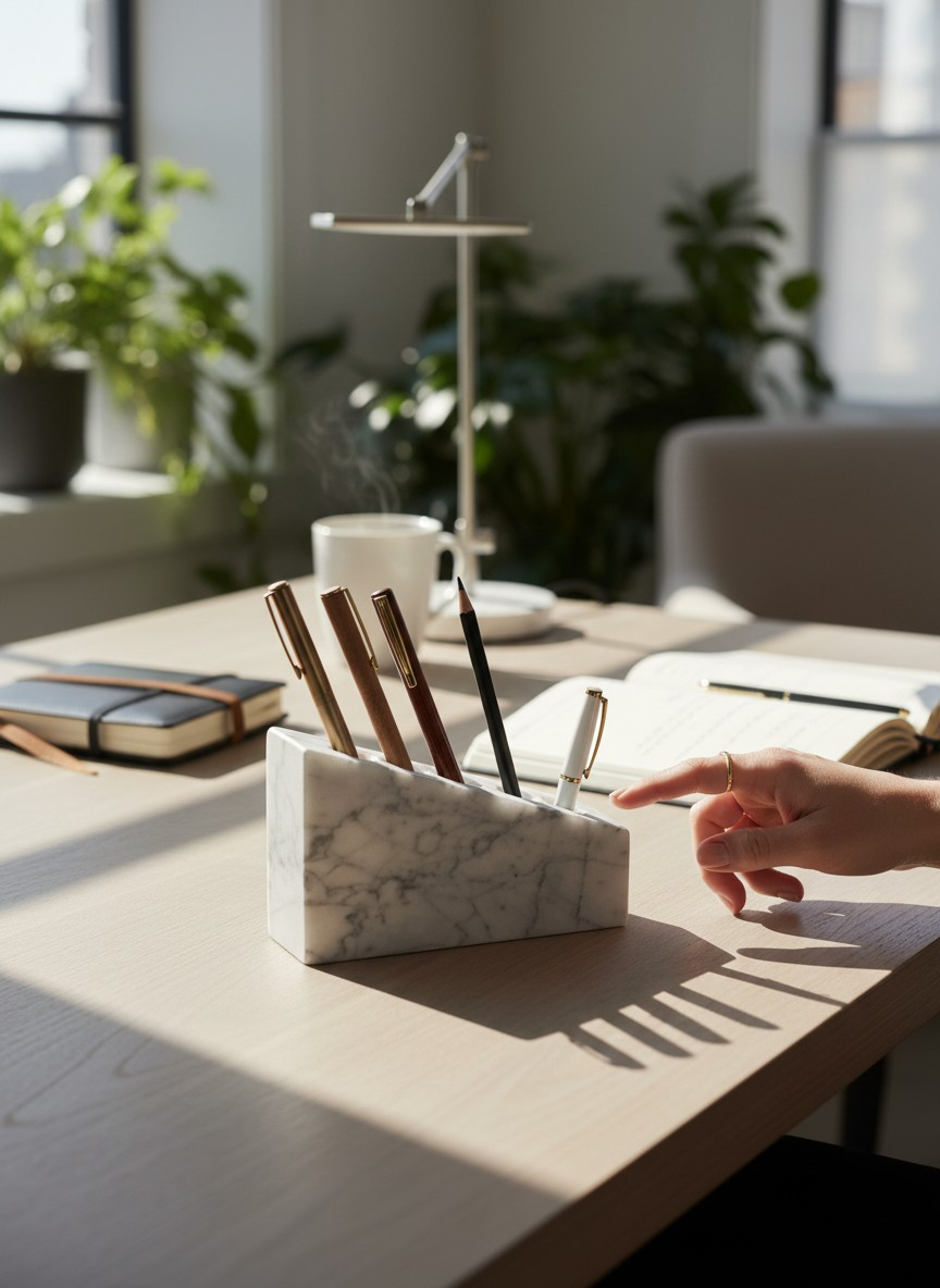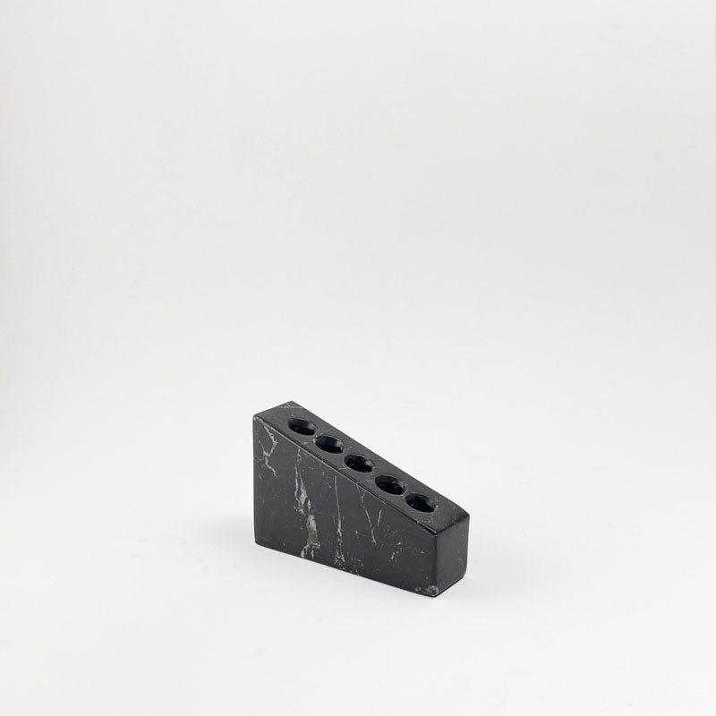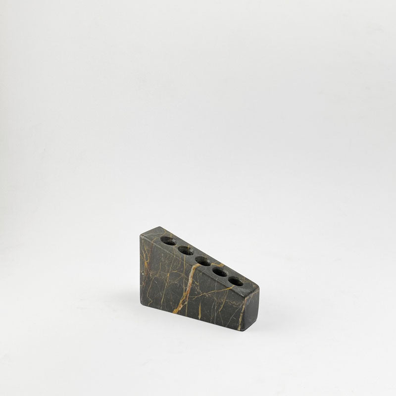The toothbrush holder is made from a single piece of natural stone, creating a uniformity of color and protecting the seamlessness of the piece. The holes run right through, meaning that